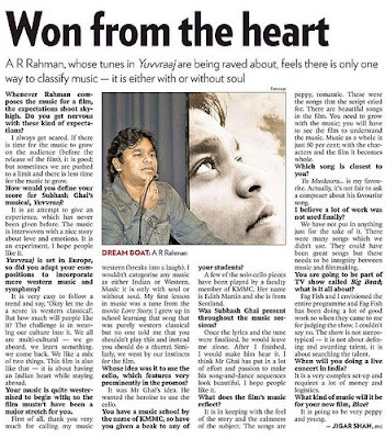 Rahman’s upcoming projects include Mani Ratnam’s Ravan and Shankar’s Endhiran – The Robot. “Yogi B’s song has come out well,” he says, adding that it is not the Superstar’s introduction song in the film. Though he is now internationally-acclaimed, Rahman is still considered “elusive”. Is that intentional, we ask him. “Work comes first for me.
